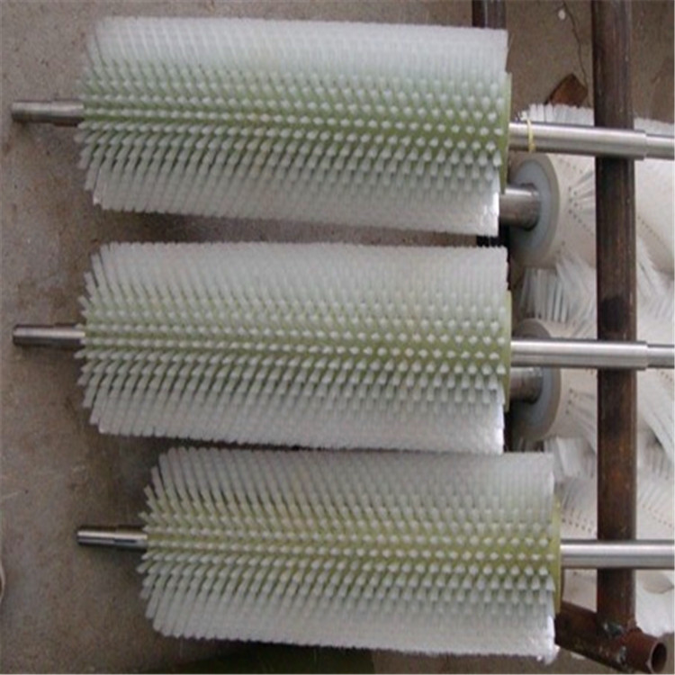 2、水果、蔬菜等工業化生產時,用尼龍的刷輥對各種水果、胡蘿卜等農業作物進行清洗,要求刷絲抗壓、彈性好,但又不能擦傷水果和蔬菜。食品機械毛刷材料采用PA6、PA66、611,612,、010絲等,輥芯使用45#圓鋼或不銹鋼件,注塑,植入耐高溫尼龍刷絲,用于清洗水果表面污垢和表面打蠟;刷毛多選用防菌尼龍1010刷絲,耐溫耐磨,刷絲不回彎,不掉毛。